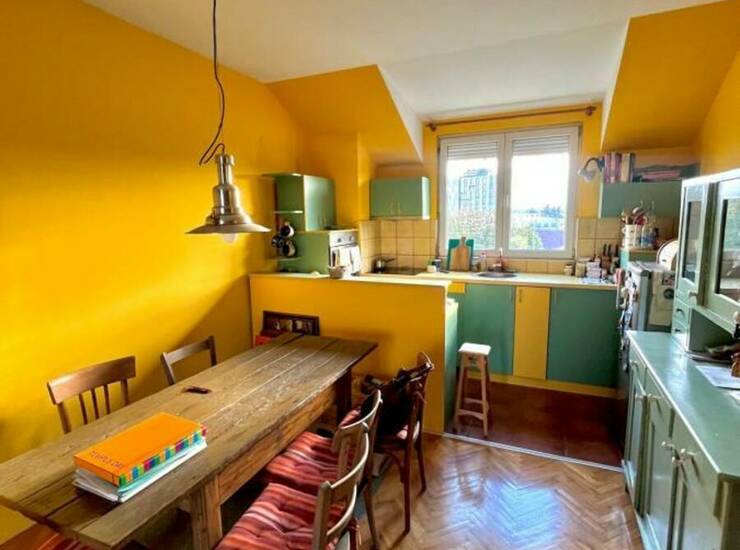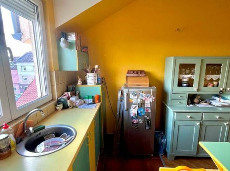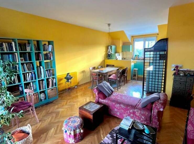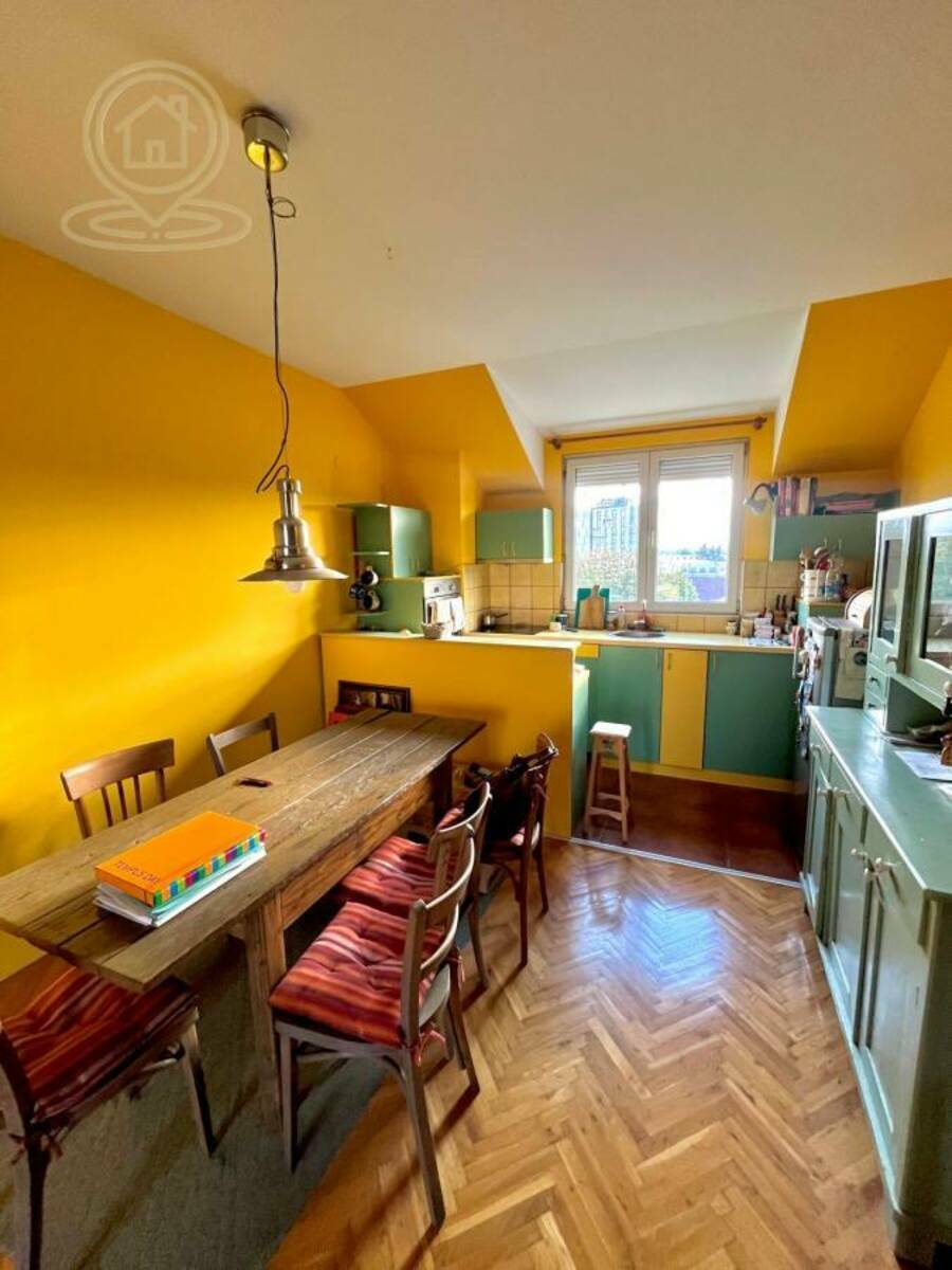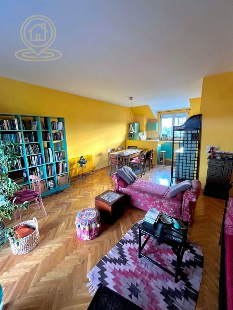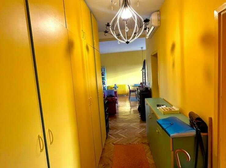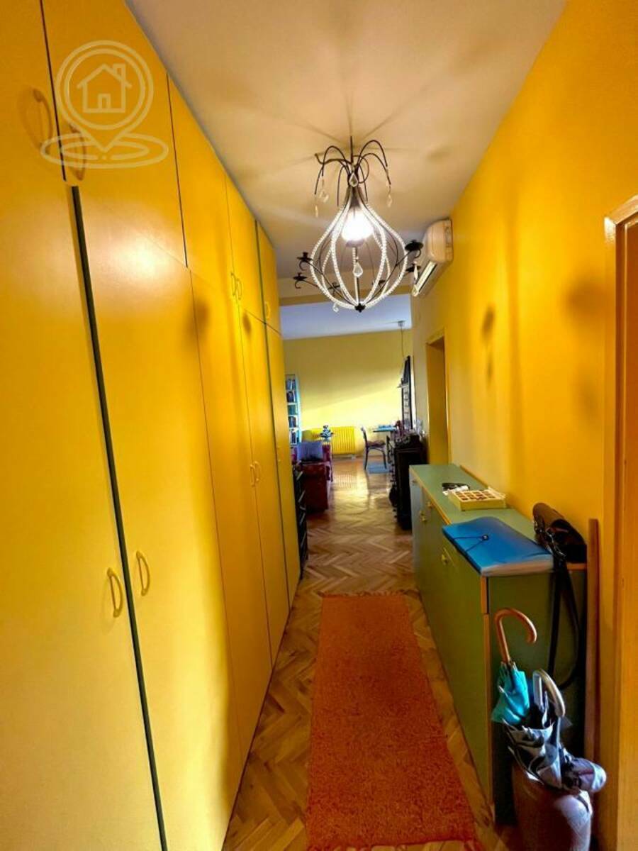 Dnevni boravak povezan sa trpezarijom i kuhinjom pruža otvoren i prijatan ambijent, idealan za porodični život ili rad od kuće. Stan je funkcionalan, miran i pruža udobnost savremenog života u spoju sa klasičnim arhitektonskim elementima.