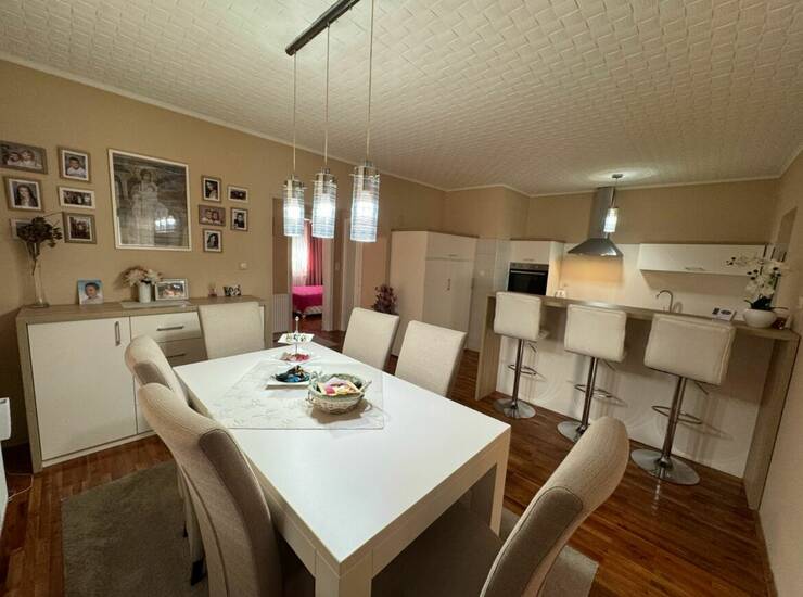 Porodična kuća u Kukujevcima, 129km na 17.2 ara placa. Tri spavaće sobe, dva kupatila, kuhinja sa trpezarijom, dnevna soba i ostava. Grejanje etažno na pelet, inverter klima i mogućnost priključenja na gas. Parket u celoj kući. Prodaje se sa nameštajem i tehnikom. Veliko dvorište i bašta.