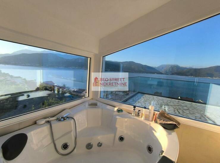 Prodaje se luksuzna kuća na tri sprata, na nekoliko minuta hoda do mora. Velike terase na kući sa panoramskim pogledom sa prostorom za ležaljke. Potpuno nova, gradjena kvalitetnim materijalima, klimatizovana, 2 bojlera od 340 litara, dozvola za turističko izdavanje