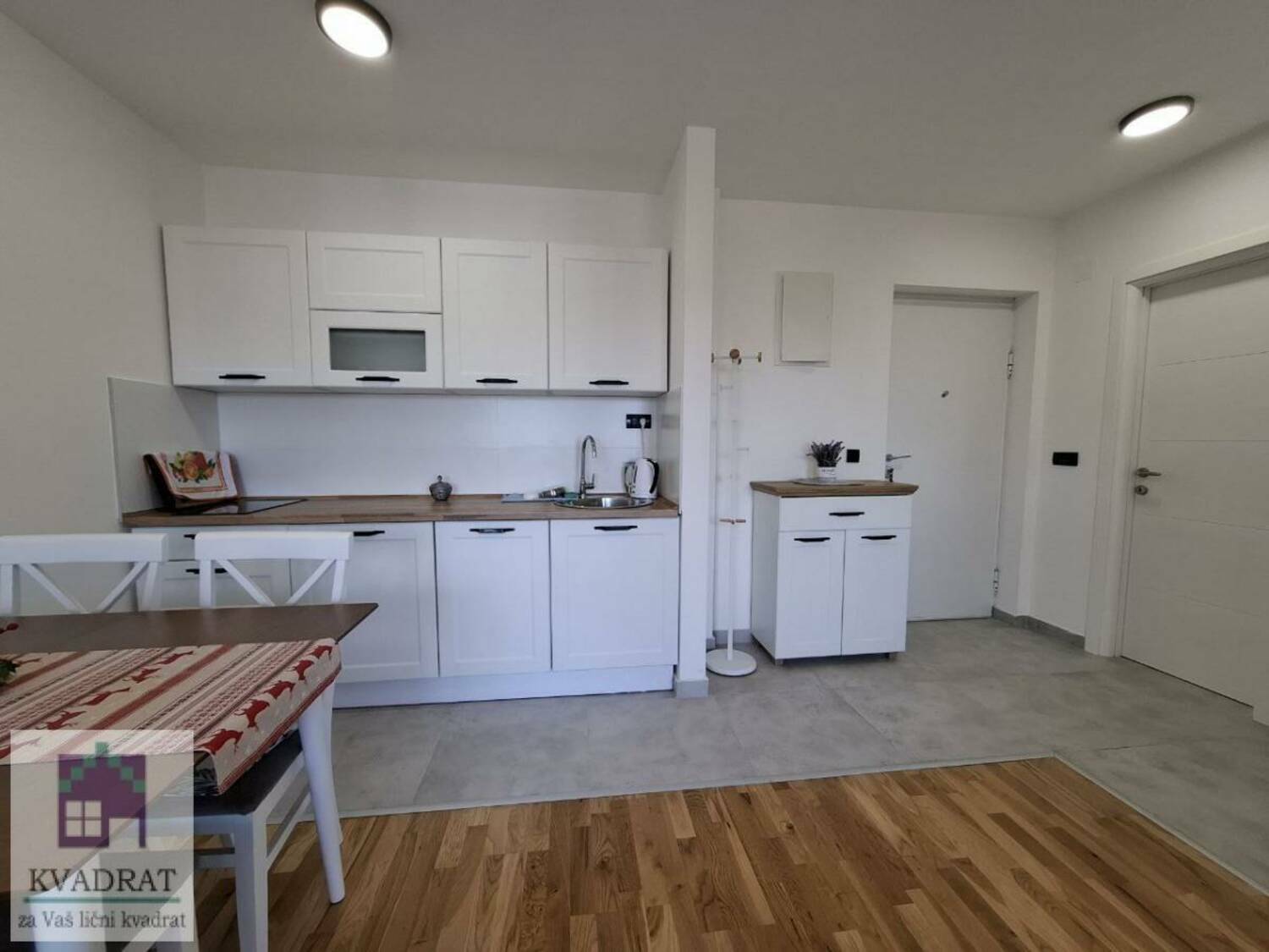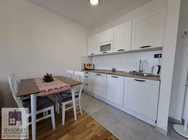 Apartman se sastoji se od ulaznog hodnika, dnevnog boravka sa kuhinjom, spavaće sobe, kupatila i terase.