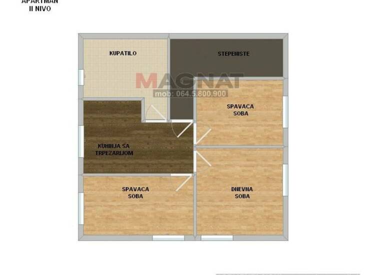 2. Sprat:Poseban ulaz, mala kuhinja sa trpezarijom, dnevna soba, 2 spavaće sobe i konforno kupatilo sa tuš kabinom.
