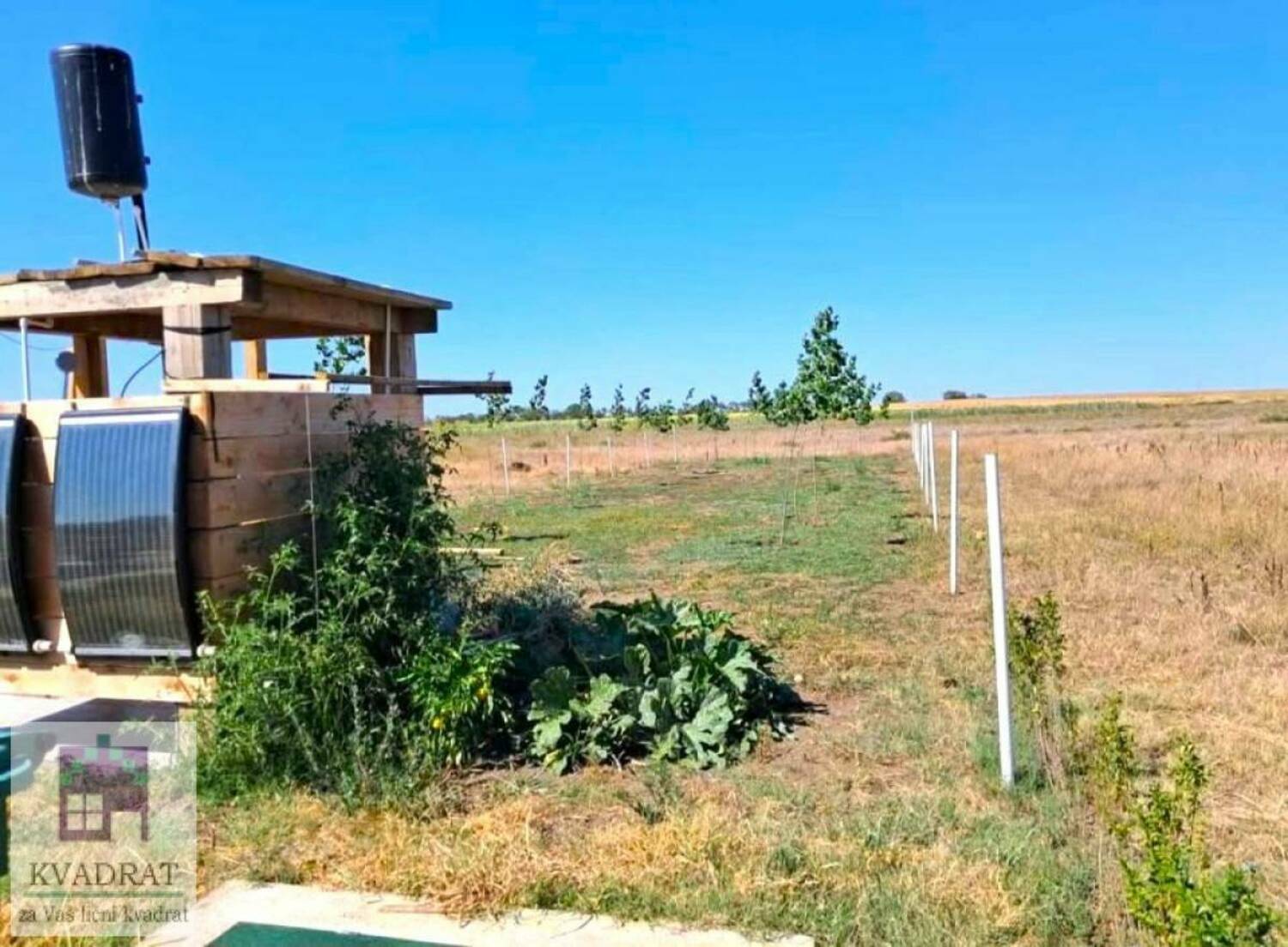 Vikendica se nalazi na placu površine 735m2. Nezavisna od sistema, poseduje svoju struju preko solarnih panela, bunarsku vodu, kanalizaciju I mogućnost grejanja na čvrsto gorivo.